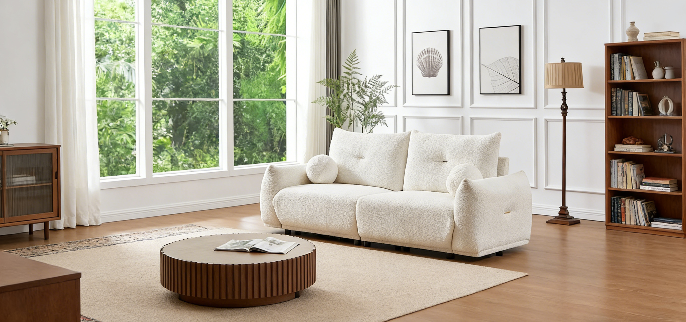 The soft sofa is made of high gram weight lambswool fabric, the deep seat sofa is very cozy and soft.